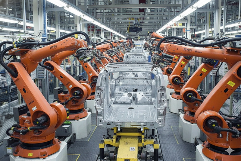 Heavy-duty chassis construction designed for 24/7 operation in harsh manufacturing environments.